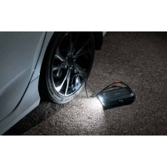 Un projecteur LED intégré avec modes blanc, rouge et SOS améliore la visibilité en cas d’intervention nocturne (changement de roue, dépannage). Cette fonction renforce la sécurité en situation d’urgence.